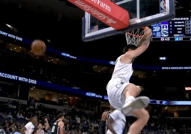 半场数据,灰熊队这边,扎克-伊迪出战13分钟,7中7,三分1中1得到16分3板2抢断。
