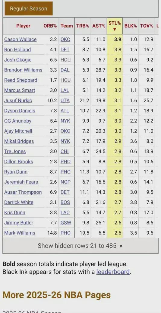 谢泼德本赛季抢断率高居联盟第五;